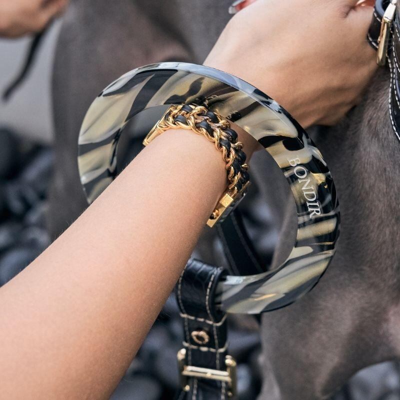 愛するペットのための、まさにオートクチュールの象徴ともいえるOBSIDIANドッグリーシュをご紹介します。贅沢に手作りされたこのリーシュは、単にペットを導くだけでなく、比類なき洗練されたスタイルで彩ります。最高級のカーフスキンレザーを使用し、高級感あふれる美しい仕上がりです。片面にはマットブラックのクロコダイルプリントが施され、エッジの効いたモダンな魅力を放っています。