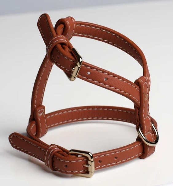 柔らかなナッパレザーを使用し、職人の手で丁寧に仕立てられた Gabriele ハーネス。上品なホワイトのコントラストステッチと輝くゴールドトーンの金具が、ラグジュアリーな存在感を放ちます。