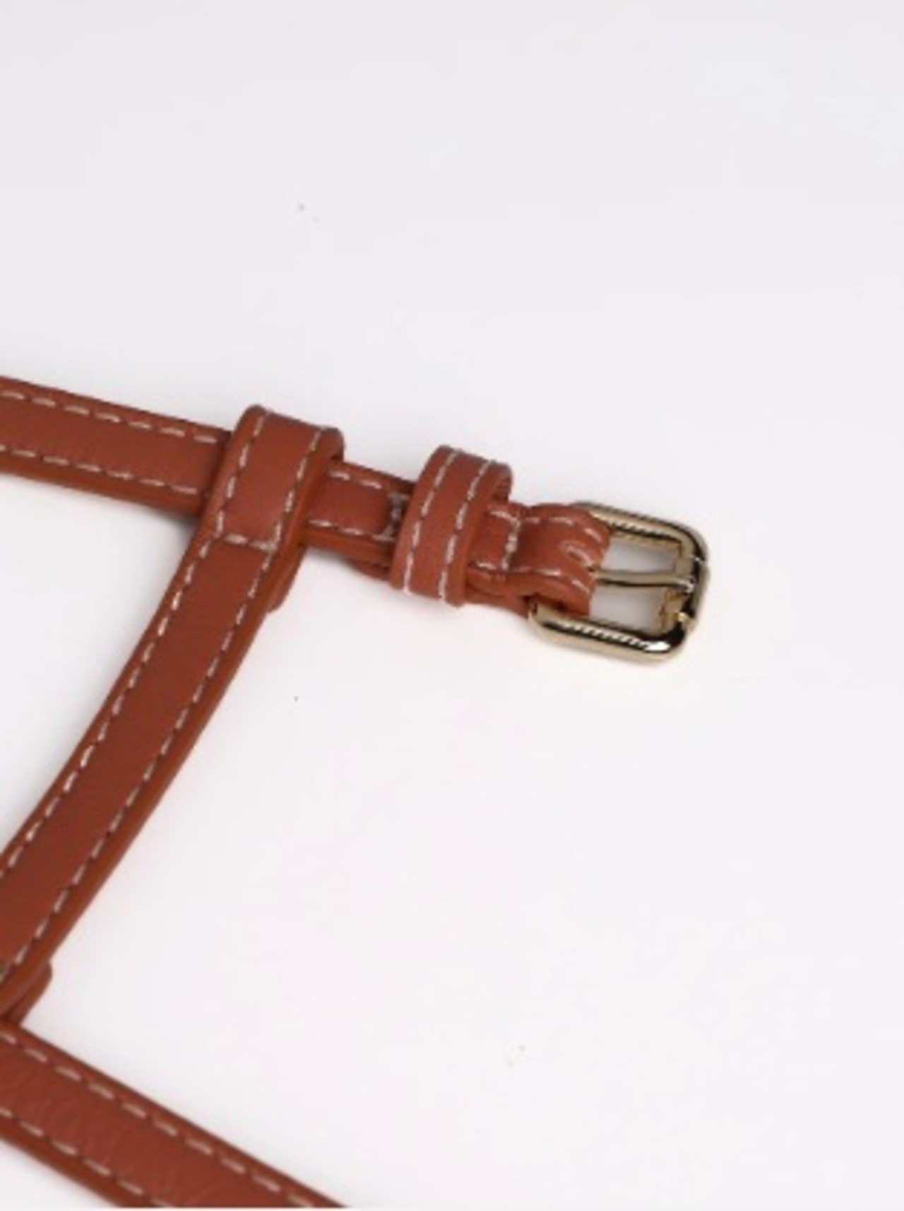 2つの調整可能なバックルにより、愛犬に合わせた快適なフィットが可能。小型犬から中型犬まで対応し、スタイルと実用性を兼ね備えています。