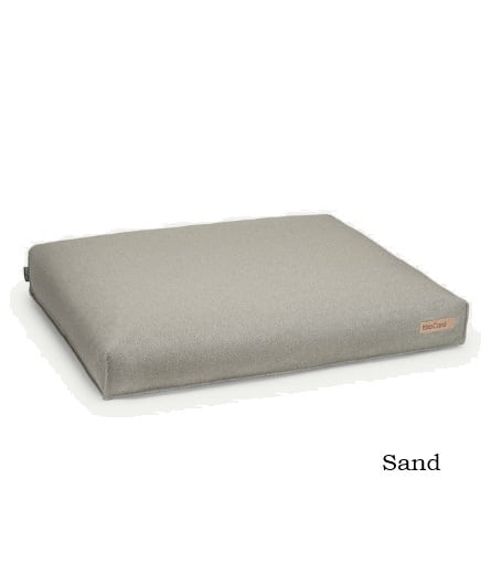 充填材には、特別なリサイクルフォームが使用されており、弾力性が高く、頻繁な使用でも長期間柔軟性を保ちます。クッションの中央には、犬の自然な体の曲線をサポートするように形成された凹みがあり、背中と脊椎がその凹みに包まれ、頭は少し高めの外側の縁に快適に乗せられる設計です。