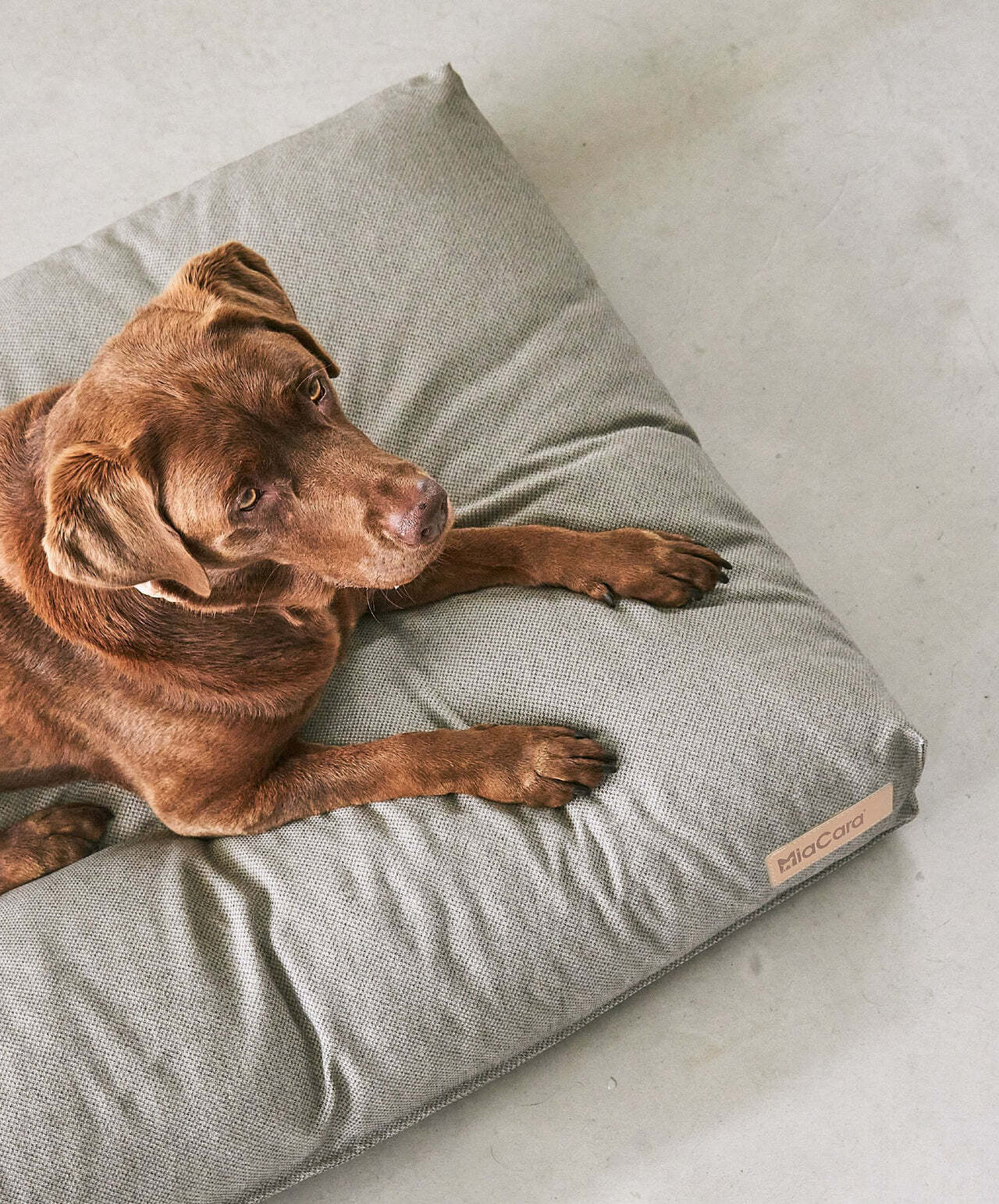 MiaCareは、SEAQUAL INITIATVEと提携し、環境に優しい「Mare Dog Cushion」を製造していています。クッションカバーは、海岸や埋立地から回収された海洋プラスチックで作られた、認定されたSEAQUAL® YARNという独自のポリエステル繊維でできています。