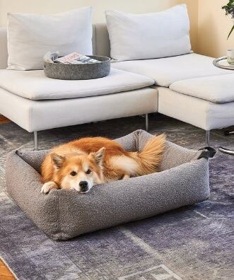 テクスチャード加工のブークレ生地の下には、革新的で高品質な詰め物が詰まっています。側面の丈夫なフォームボルスターが、愛犬が頭を休める安全な快適ゾーンを作り出します。低反発フォームマットレスが体に優しくフィットし、背骨と関節を最適にサポートします。