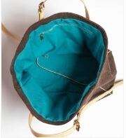 内側の便利な機能:ライトブルーのコットンライニングには、ファスナー付きポケットとフック付きで小物を整理しやすい設計。