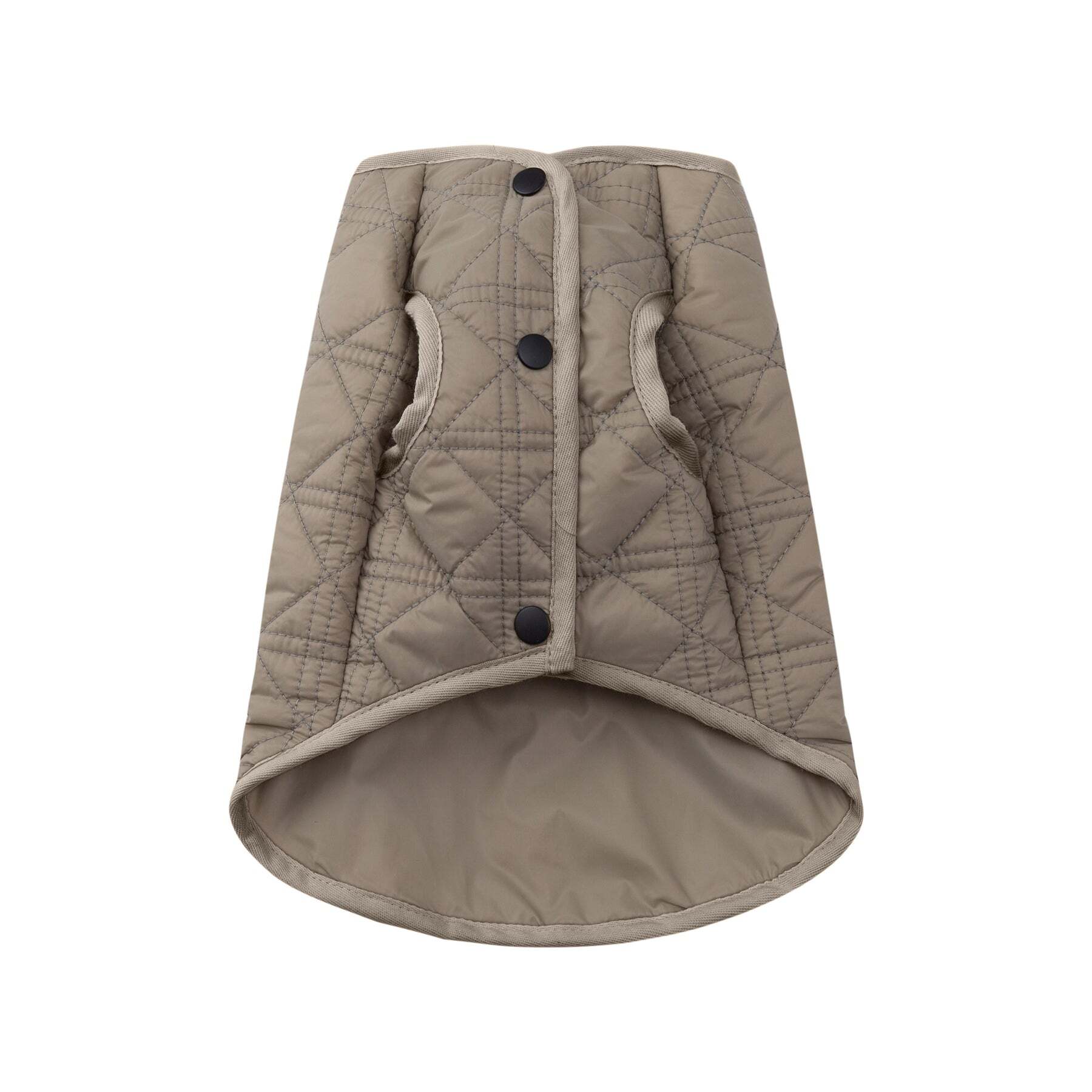愛犬の魅力をひきたてるノースリーブジャケット。落ち着いたカーキ色が特徴です。