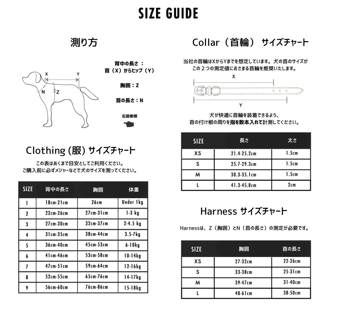 ※詳しいサイズは服のサイズチャートをご覧ください