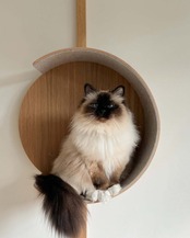 アルトウォールクライマーは、猫に無限の遊び、休息、睡眠の機会を提供します。この壁取り付け型キャットツリーは、キャットツリー、爪研ぎ、愛猫用のベッド、そして現代的な収納スペースを一つのスタイリッシュなオブジェにまとめています。木製のフレームには、柔らかなクッションや爪研ぎパネル、そして本や装飾品、猫の持ち物を収納するための棚が備えられています。