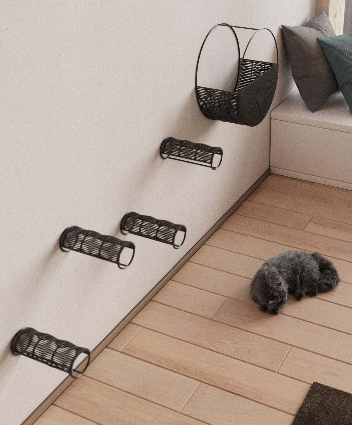 猫が登るのが大好きなのは皆さんご存知のことかと思います。特に、外で木に登れない室内飼いの猫にとっては重要です。猫は縄張り意識が強く、上から周囲を観察するのが大好きです。Gradino - Wall Nestを使えば、あなた自身で猫用の壁をデザインし、猫が登ったり、眠ったり、自分のお家を見渡したりするスペースを提供できます。