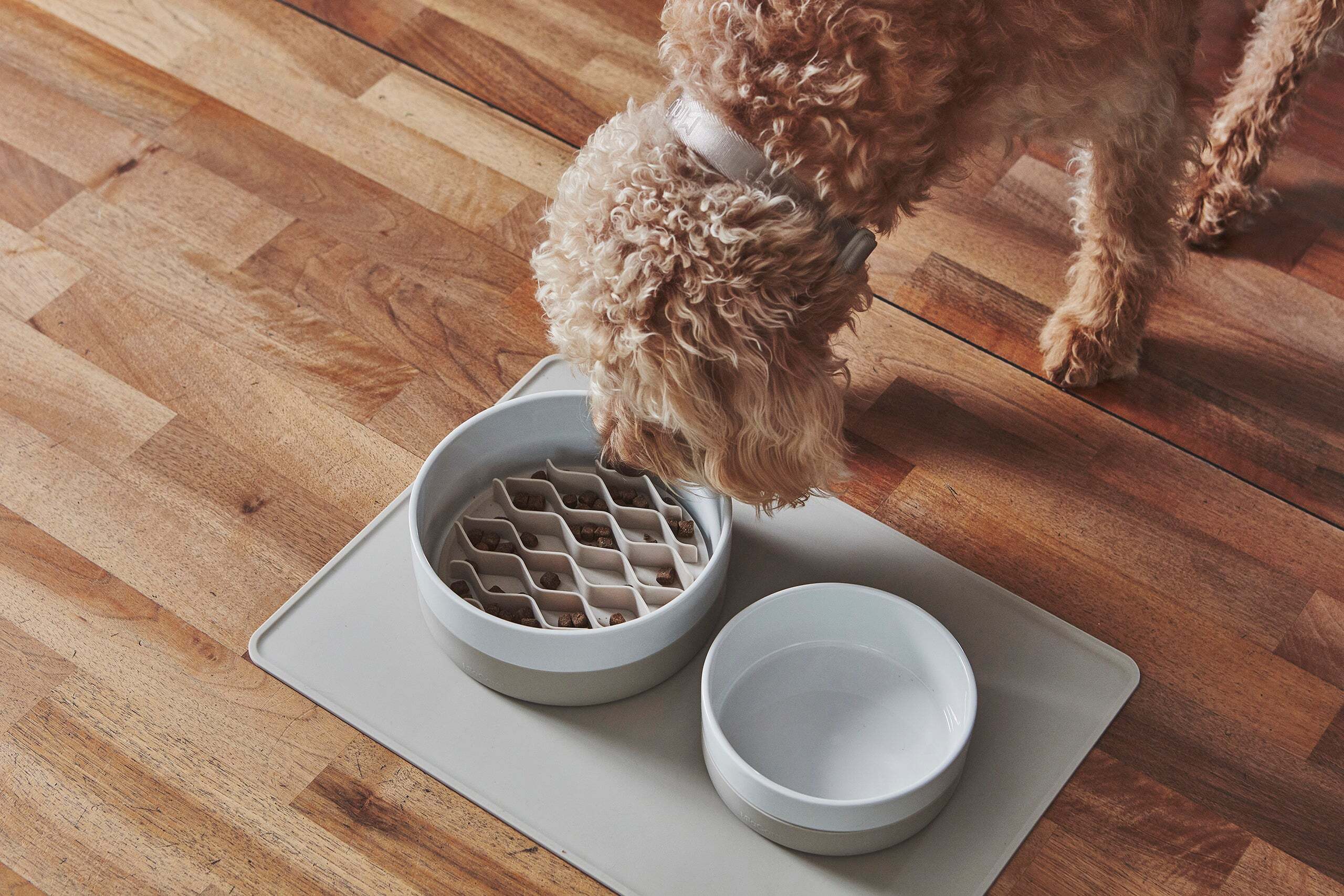 Lentoを犬のボウルに置くだけで、大量の食べ物を一気に飲み込むのを防ぎます。Lentoスローフィーディングインサートは、特別に設計された弾性スラットを使用して、犬の夕食を適切に分けます。