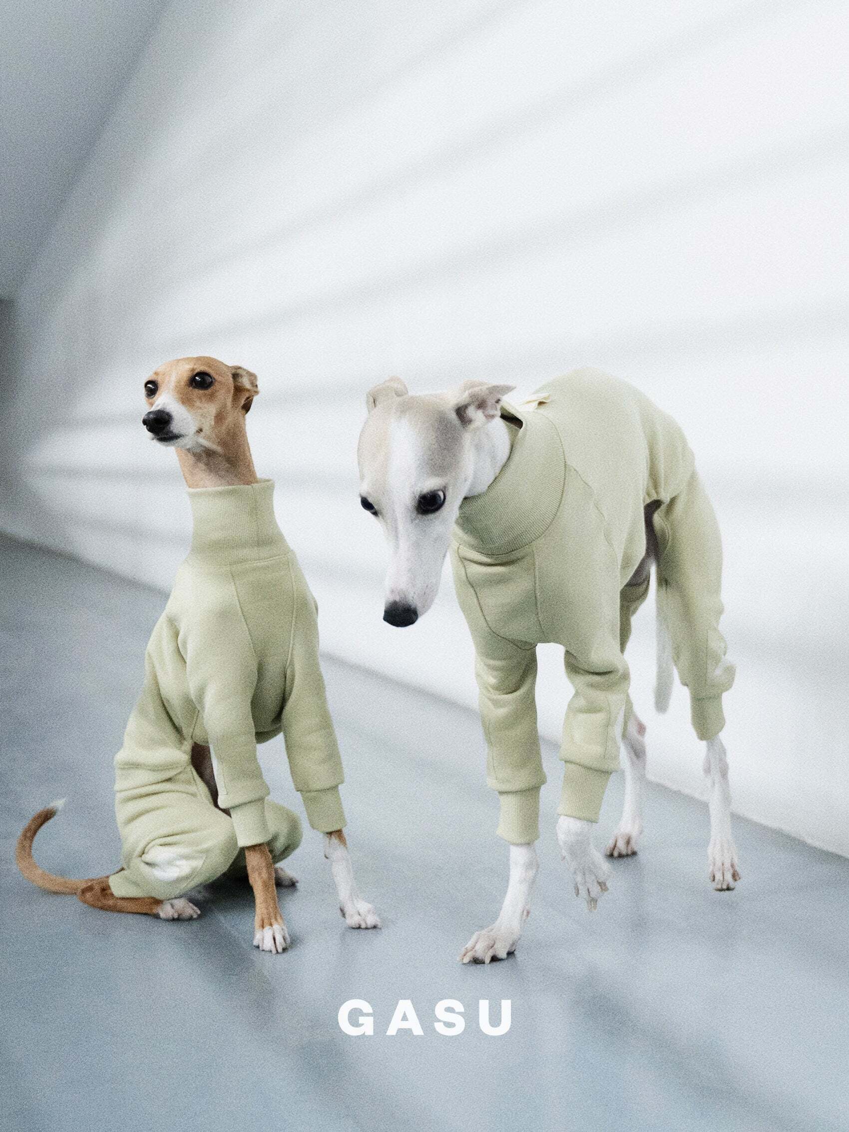 このジャンプスーツはイギーやウィペットに適していますが、伸縮性のある襟により他の細身の犬種も着用できます。GASUは各生地のために独自のロゴラベルを作成し、ペットたちが一歩踏み出すたびに揺れ、春の美しさを共に楽しむことができます。